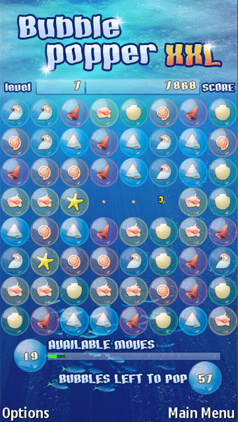 Atenção com as estrelas do mar que aparecem quando você estoura mais de quatro bolhas de uma vez, pois elas eliminam linhas inteiras. A única desvantagem é que a versão grátis de Bubble Popper XXL precisa de internet para carregar publicidade.